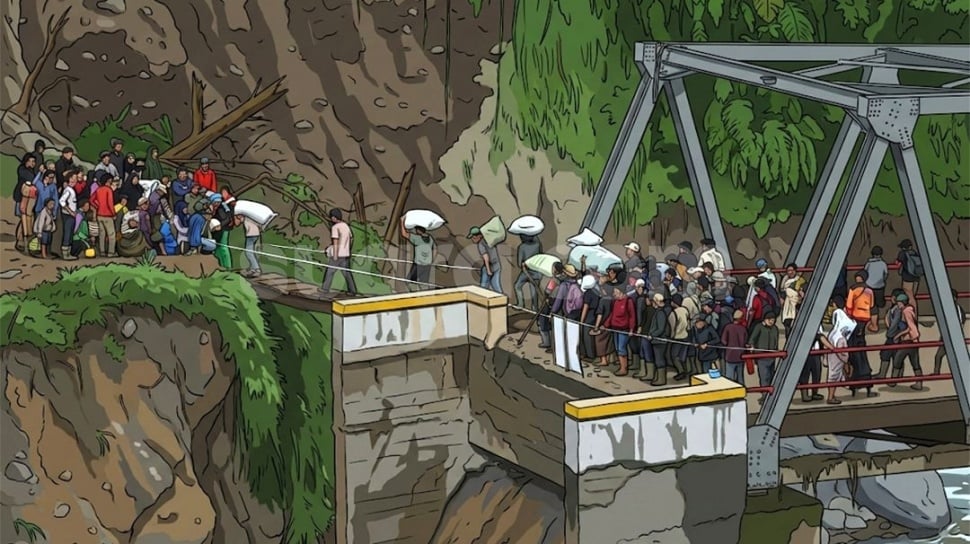 Harapan kini digantungkan pada jembatan-jembatan darurat dan uji coba jalur, agar beras dan gas tak lagi harus ditebus dengan perjalanan sehari semalam. [Iskandar]